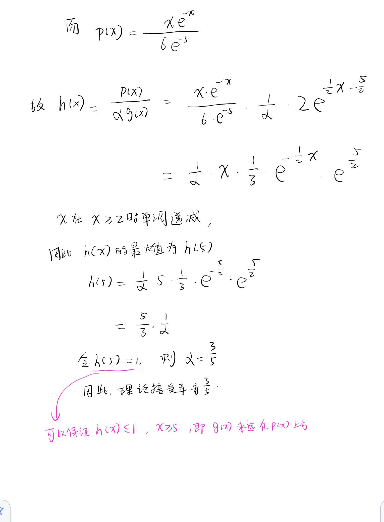 p(x)=\frac{x e^{-x} 1\{x \geq 5\}}{\int_5^{\infty} u e^{-u} d u}